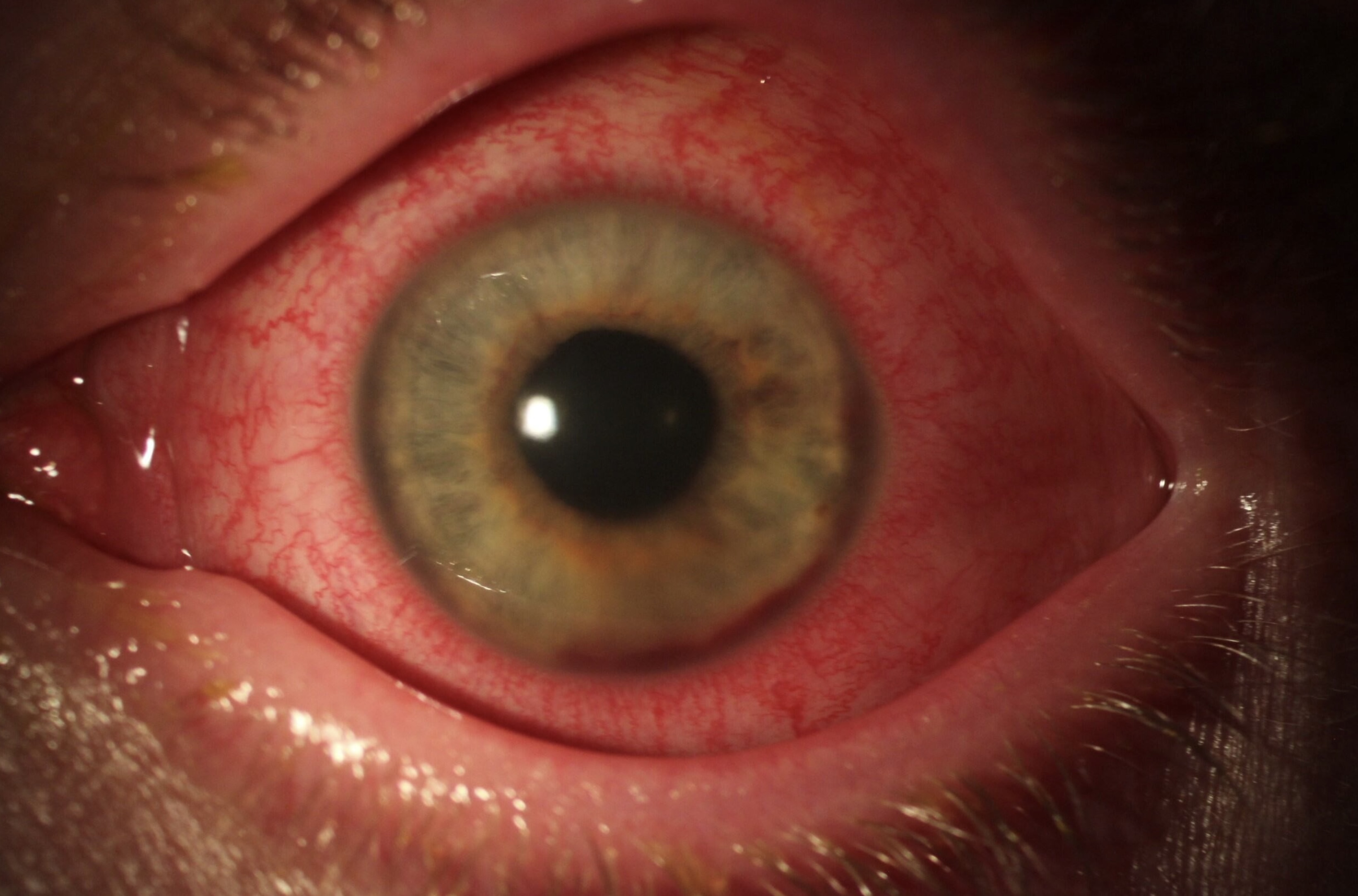 Dry eye syndrome (DES), also known as keratoconjunctivitis sicca (KCS), is the condition of having dry eyes. Other associated symptoms include irritation, redness, discharge, and easily fatigued eyes. Blurred vision may also occur. Symptoms range from mild and occasional to severe and continuous. Scarring of the cornea may occur in untreated cases.
